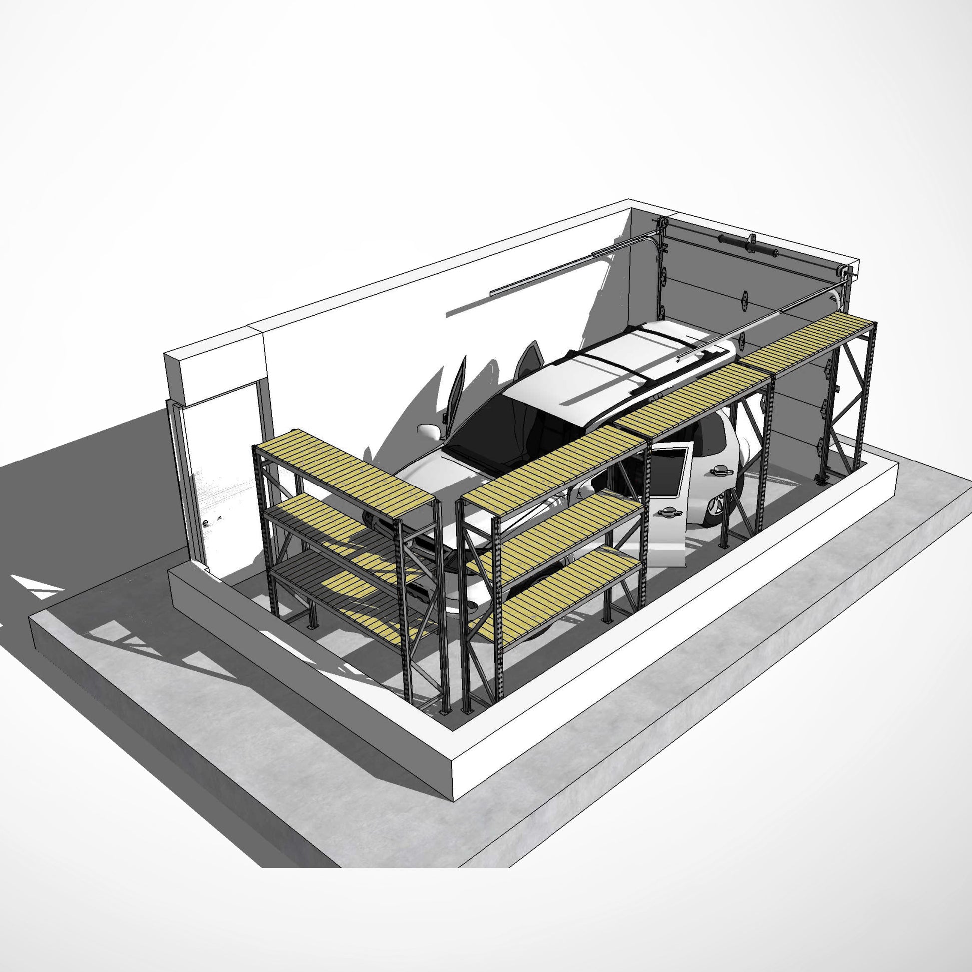 Our racking units are easy to install (less than 5 minutes per unit), adjustable and can be removed, relocated or put back with ease. The units consist of pre-assembled, black epoxy coated steel frames and wooden decks. It can carry a maximum capacity of 500kg per stacking level (approx. 1500kg per single unit).