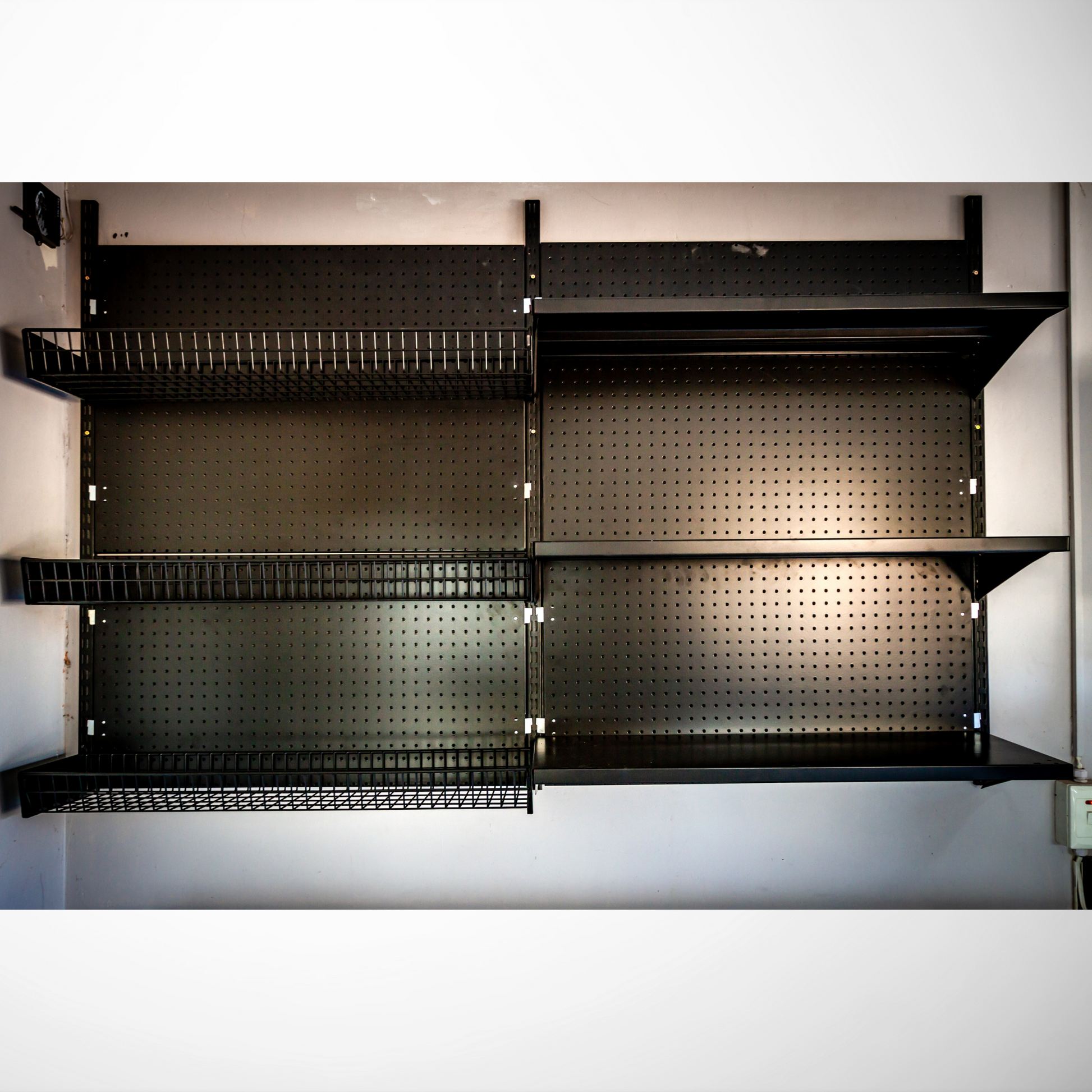Our wall mounted steel perforated pegboards are designed to be mounted onto a wall using Wall Bands. The rigid steel boards are ideal for the professional workshop and DIY enthusiast. Our pegboards are black epoxy coated.